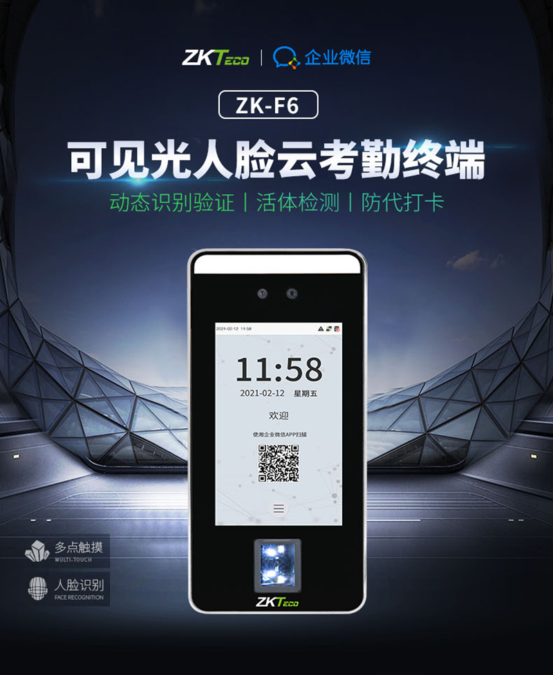 首页> 新闻中心 > 新品发布 >新品 ▏可见光面部云考勤终端ZK-F6