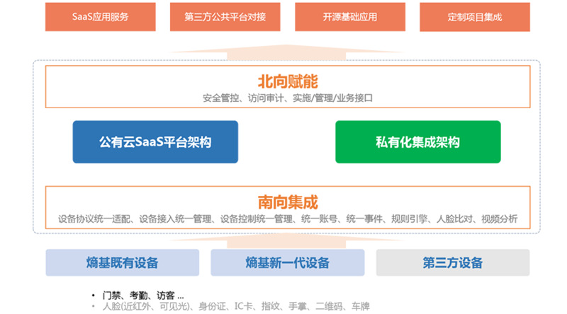基于近年来对智慧城市发展的探索和洞察,熵基科技提出“1+1+N”的建设理念,即“1张泛在感知网+1个应用云平台+N个场景应用”。以泛出入口场景应用为切入点,打通软硬件,构建服务生态和全方位智能联网能力的端到端、全栈式解决方案,并进一步推进园区全场景智慧的落地。