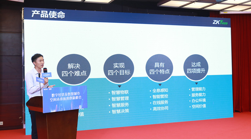 熵基科技股份有限公司(以下简称“熵基科技”)受邀出席本届展会。在同期举办的“数字经济及智慧城市空间未来应用创新峰会”上,熵基科技智慧园区解决方案经理王令发表了“AIoT智慧园区——聚焦办公建筑、提供一站式智慧空间解决方案”的主旨演讲。