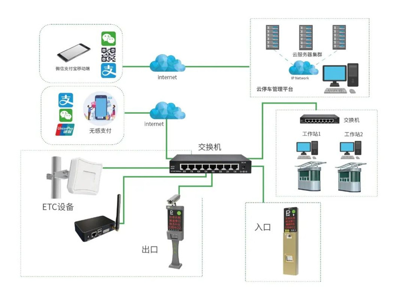 这套系统尤为独特的一点就是,支持车牌识别+ETC+移动支付方式,将ETC技术运用于智慧停车场中,使车辆进出车场出入口识别率无限接近100%,实现无感支付和无人值守。为车主提供更安全、便捷的通行体验,同时也提高管理方对停车场的管理效率。