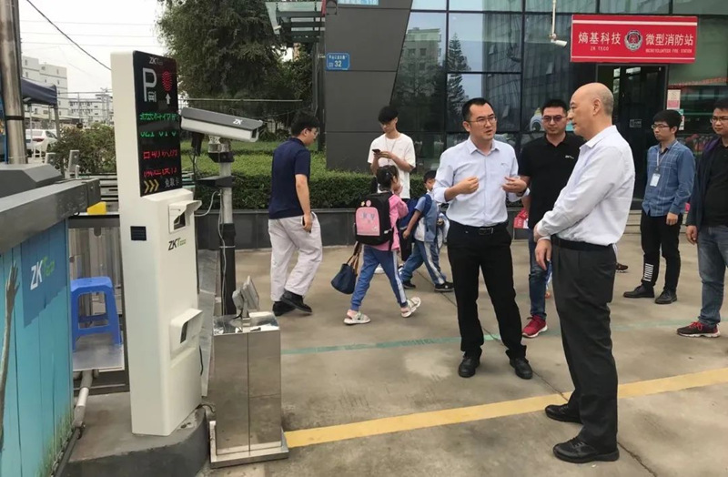 熵基科技中国区事业群总经理傅志谦向智交协执行会长樊超介绍新一代智能车牌识别系统