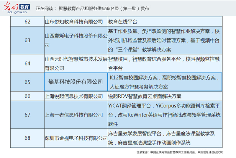 熵基科技入选首批“智慧教育产品和服务供应商名录”