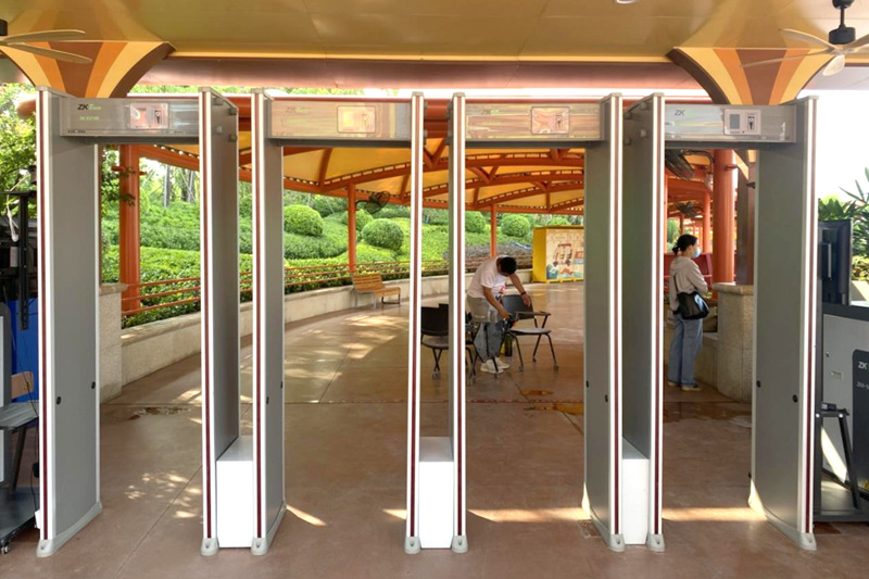 通过在景区入口配置金属探测安检门,可以有效的检测出游客身上携带的金属危险违禁品,当游客从安检门通过时,人身体上所携带的金属超过根据重量、数量或形状预先设定的参数值时,安检门即刻报警,并显示造成报警的金属所在的区位,让安检员及时发现游客随身携带的金属物品。在保障游客安全的前提下,确保游客快速入园。