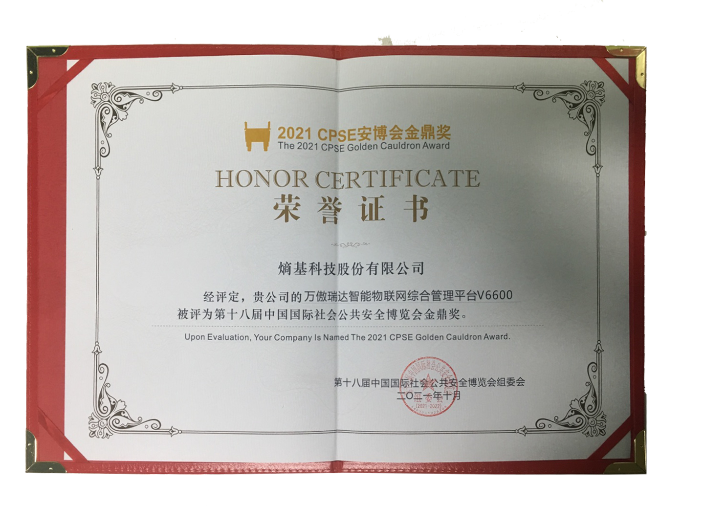 2022年荣获:a&s 2022年全球安防50强(第12位);2022年十大出入口控制品牌第三名;2022年度智慧物联与安防生态-最具成长性企业;2022年第二届中国安防创新力企业;2022第十一届中国智能交通三十强企业;2022AIoT创新应用风云榜-智慧社区十大品牌;2022AIoT创新应用风云榜-AIoT五十强;2022中国物业服务企业500强优选服务商品牌等。