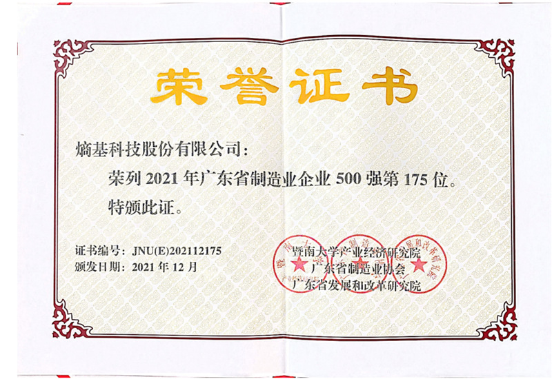 喜讯!熵基科技蝉联“广东省制造业500强”