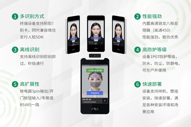 校园版微信支付一脸通门禁终端:刷脸识别更快更准