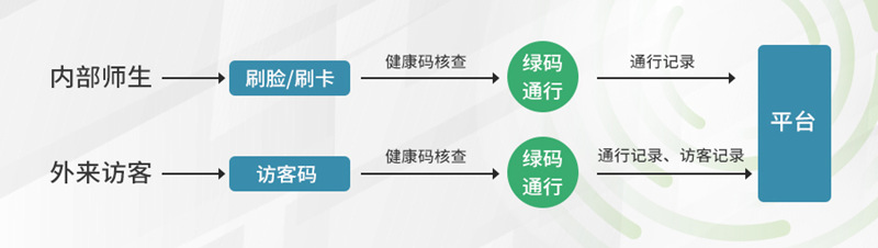 为了解决这一难题,熵基科技为校园安全提供一站式防疫解决方案。包含身份识别终端、人行道闸、管理系统(门禁权限分配、记录呈现)——内部师生通过白名单授权,进入校园时通过其身份介质进行权限核验,同时验证其健康码状态并自动测温,各项数据均正常方可进入校园;外来访客通过线上预约/邀约获取访客通行码,在身份识别终端上校验访客码,验证其身份并校验其健康码状态,显示正常即可进入校园,进出的数据仅供学校管理方作为校园防疫台账封存管理。