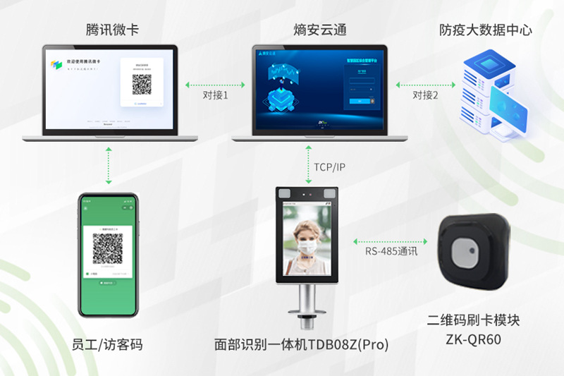 以人的需求作为根本出发点,围绕安全管理、数字化运营需求,结合园区占地面积大、入驻企业多、流动人口杂等特性,熵基科技联合区域合作伙伴,充分发挥在混合生物识别、计算机视觉等领域的技术优势,共同推动基于“一脸通+健康码”的数字防疫解决方案,与园区泛出入口场景数字化应用深度融合,连接园区运营方、园区内产业企业以及企业员工,推进园区安全生产、顺畅运营。