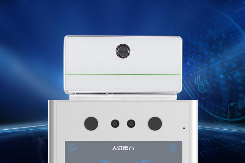 ID900正面面板上方内嵌2个200万像素摄像头,其最高分辨率为1920× 1080。该摄像头采用了两个不同的镜头设计,其中一个镜头是采用了蓝玻650nm、焦距为4.50±5%mm的可见光摄像头;另一个是窄带850nm、焦距为4.50±5%mm的近红外摄像头,视场角均为70.3º。不同的镜头玻璃,能有效过滤多余光线,从而提升图片识别效率。而摄像头两侧则是红外补光灯,用于无光环境下补光。