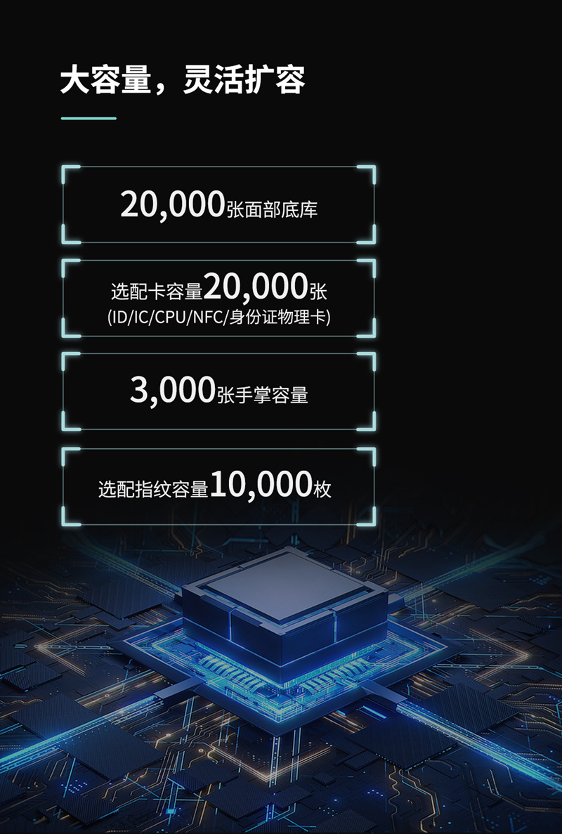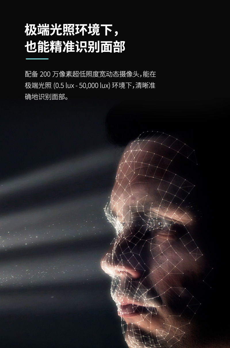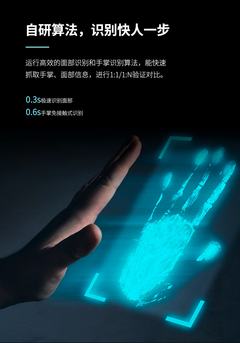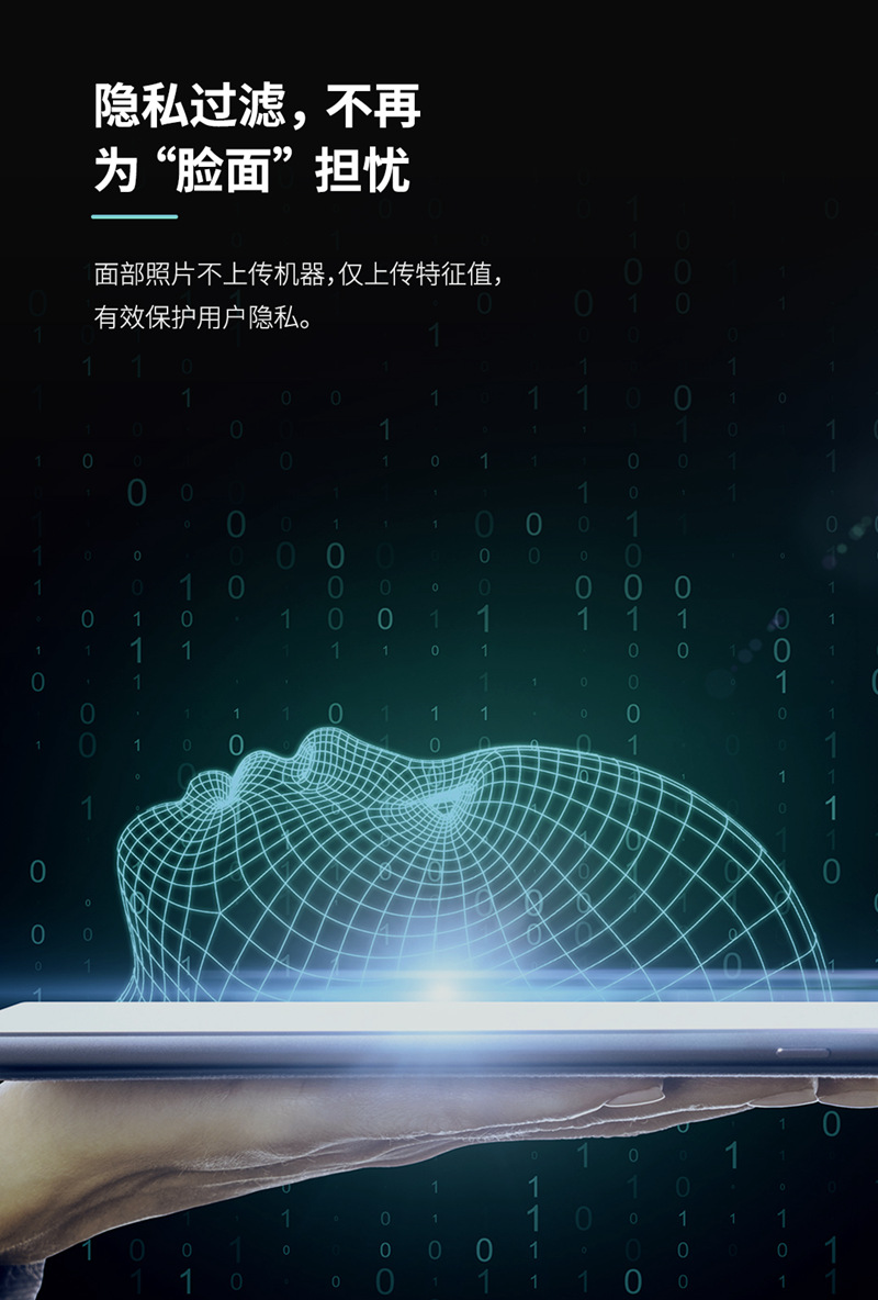 FI6000多模态采集智能终端支持面部、指纹、国密卡等多种采集方式。该产品硬件国产化,性能安全双保障,配置高清双目摄像头,搭载面部活体识别算法,能够迅速精准采集面部信息,具备强防伪能力;支持国密SM1分组密码算法,安全自主可控,为数据传输与存储提供底层加密保障。该产品采用前端采集、后端比对模式,将采集数据加密后实时传输至门禁控制器比对,确保数据处理全程稳定。