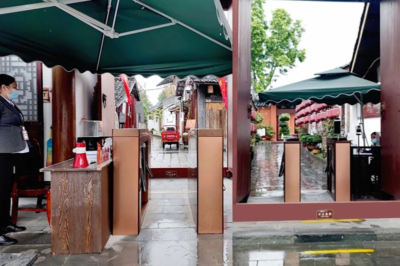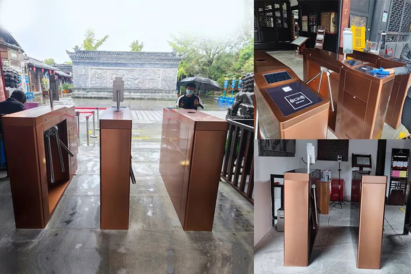 本项目使用到定制款闸机TSM3000-JQM,机身颜色电镀处理,与景区环境相融合