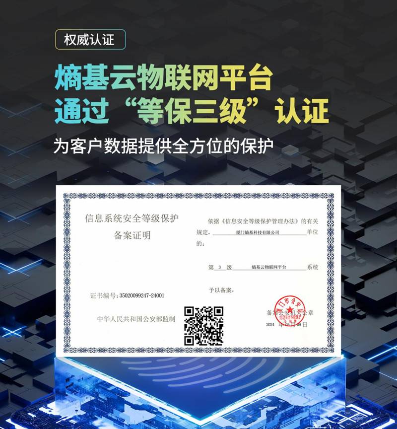 近期,通过国家授权的等保认证机构的测评,熵基科技全资子公司厦门熵基科技有限公司旗下的“熵基云物联网平台”(即MinervaIoT)凭借出色的网络信息技术及安全管理能力,荣获“信息系统安全等级保护备案证明(第三级)”(以下简称“等保三级”)。这标志着熵基科技在提高信息安全防护能力、践行合法合规义务方面迈入崭新的篇章,能够确保为用户的数据和隐私提供更高级别的保护。