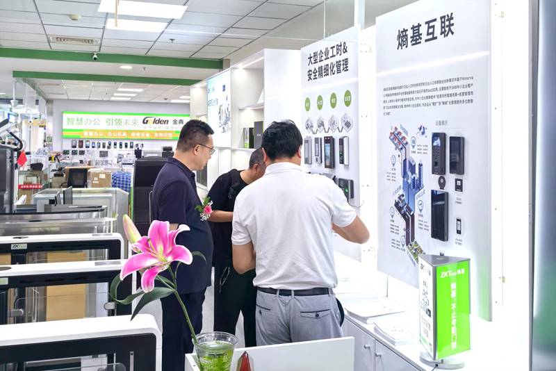 此次焕新升级的熵基长春智慧号,由熵基科技与长期合作伙伴吉林省九州数码科技有限公司(简称:九州数码)携手打造,双方基于20多年的深厚合作基础,共同为长春市场带来一站式、全方位的数字化解决方案。店内汇集考勤门禁、智能停车、智能访客、智能锁等众多产品阵列和场景解决方案,全方位满足市场多元化需求。