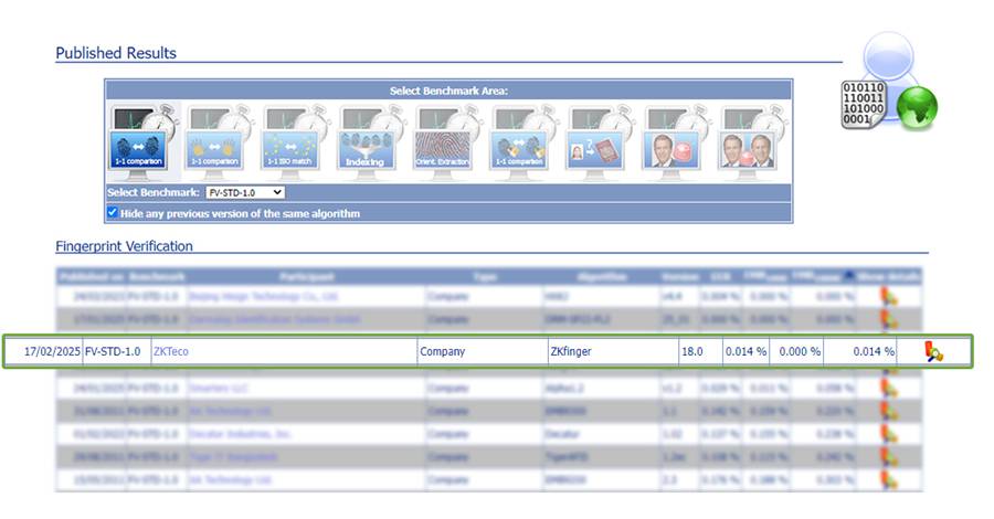 指纹算法竞赛FVC榜:熵基科技位居第三