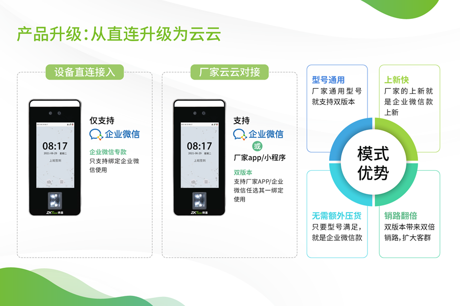 双版本支持不仅提升了设备的市场竞争力,还通过企业微信的庞大用户基础和熵基云的行业覆盖力,显著扩大了客户群体,为企业带来双倍市场机会。