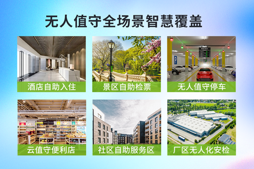 当前,无人值守技术正从单一场景扩展至全链条服务,覆盖“人-车-场-服务”的智慧生态。熵基科技以场景化解决方案为核心,赋能无人酒店、智慧景区、无人停车、云值守便利店、智慧社区及智慧工厂等多元领域,带来多重价值: